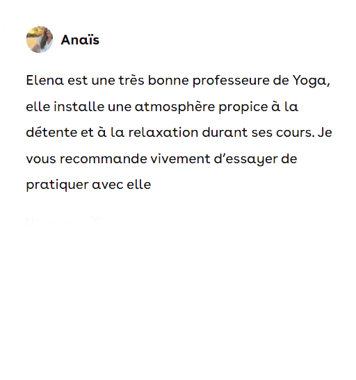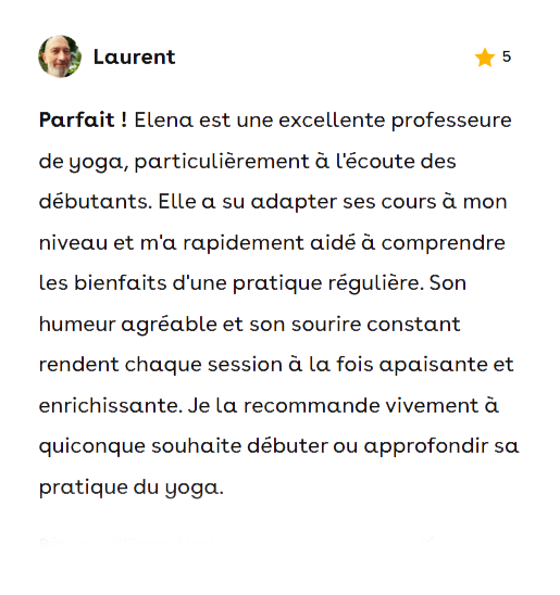 Je suis Elena, italienne vivant en France depuis 2016, professeure diplômée de yoga depuis 2022 et pratiquante depuis dix ans.